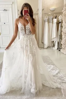 The lower dip may be covered with illusion fabric so there's no need to worry about a wardrobe malfunction! Discover the wedding dress neckline that is the most flattering for your body type. Scroll on for plunging neckline inspiration from real brides. Get the best deal for plunging neckline wedding dresses from the largest online selection at ebay.com. A plunging neckline takes the drama up a notch.